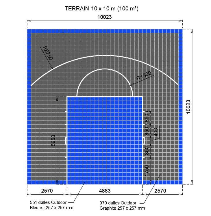Demi-terrain de Basketball 10 x 10 M | Couleur(s) au choix