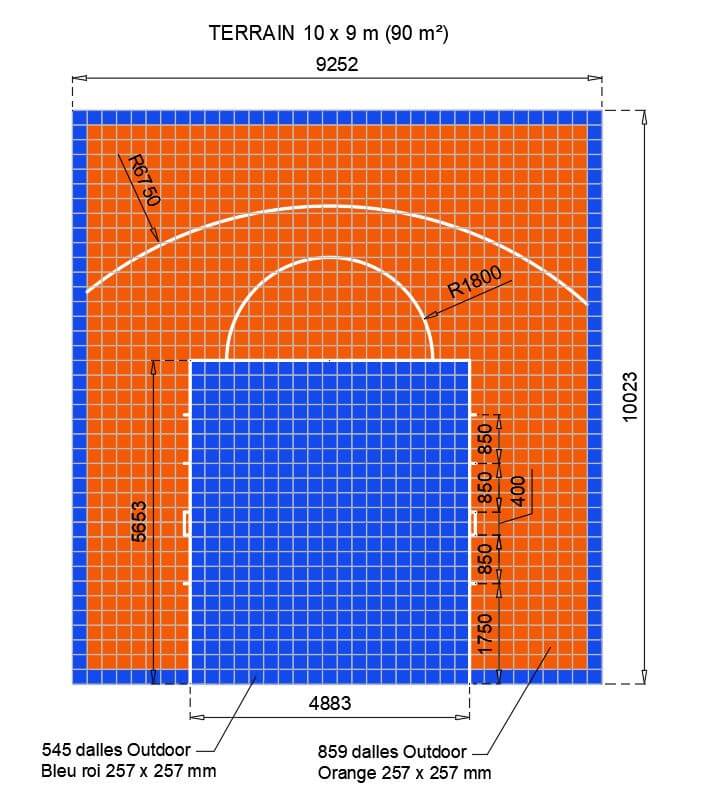 Demi-terrain de Basketball 10 x 9 M | Couleur(s) au choix