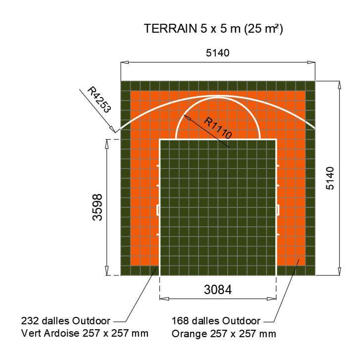Le demi-terrain de Basketball 5m x 5m comprend :