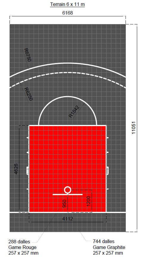 Le demi-terrain de Basketball 6m x 11m comprend :