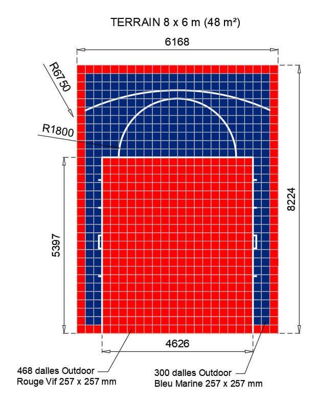 Demi-terrain de Basketball 8 x 6 M
