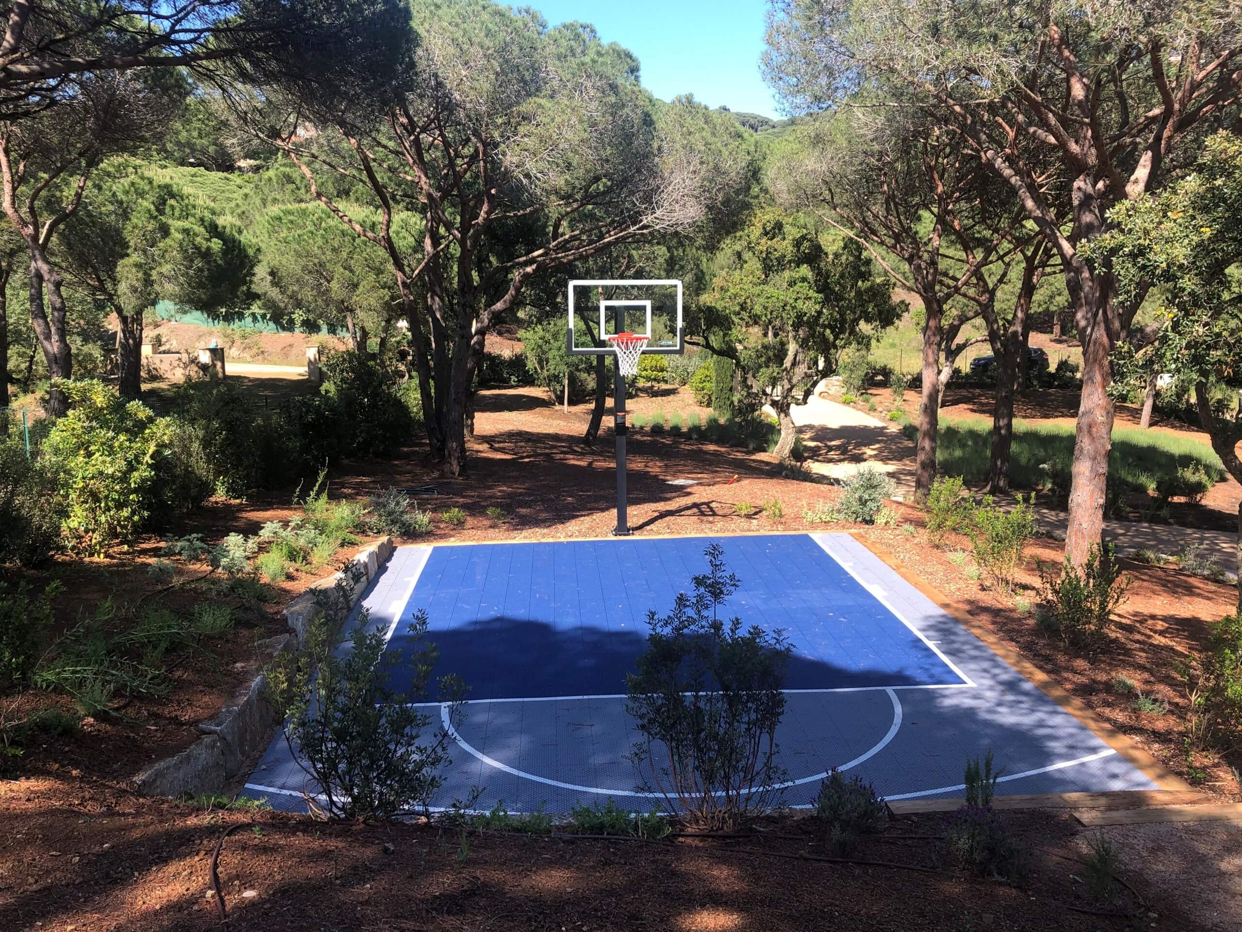 Le terrain de basket en dalles est traité anti UV