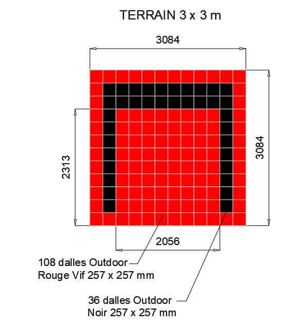 - Dimensions du terrain (en M) : 3,084 x 3,084M