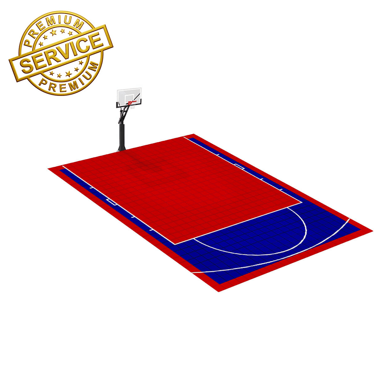 - Un terrain de basket intérieur 8m x 6m avec marquage des lignes de jeux (Blanc), personnalisation possible sur simple demande avec 1 ou 2 choix de couleur(s) pour le revêtement sportif.