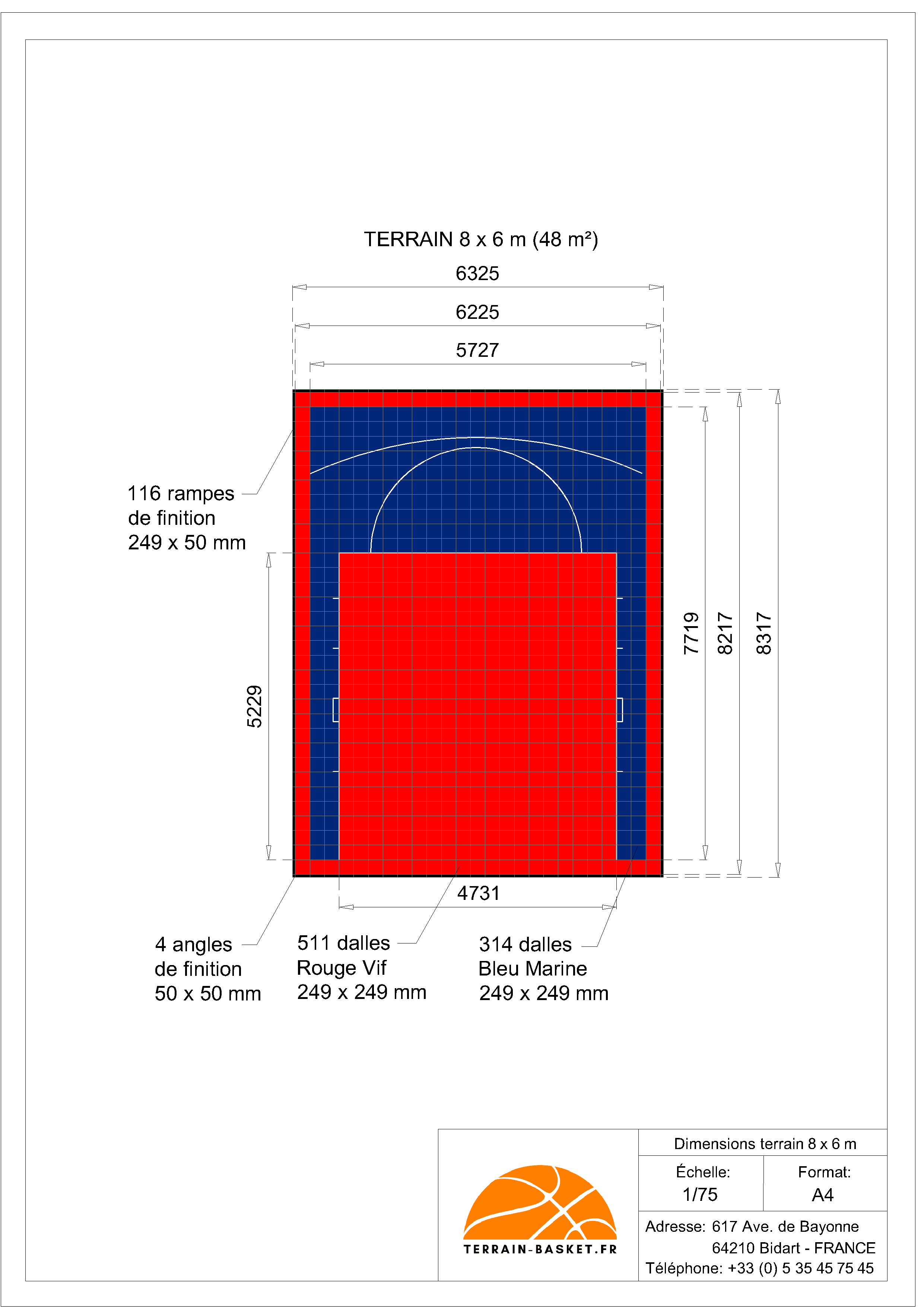 Caractéristiques du terrain de basket 8m x 6m