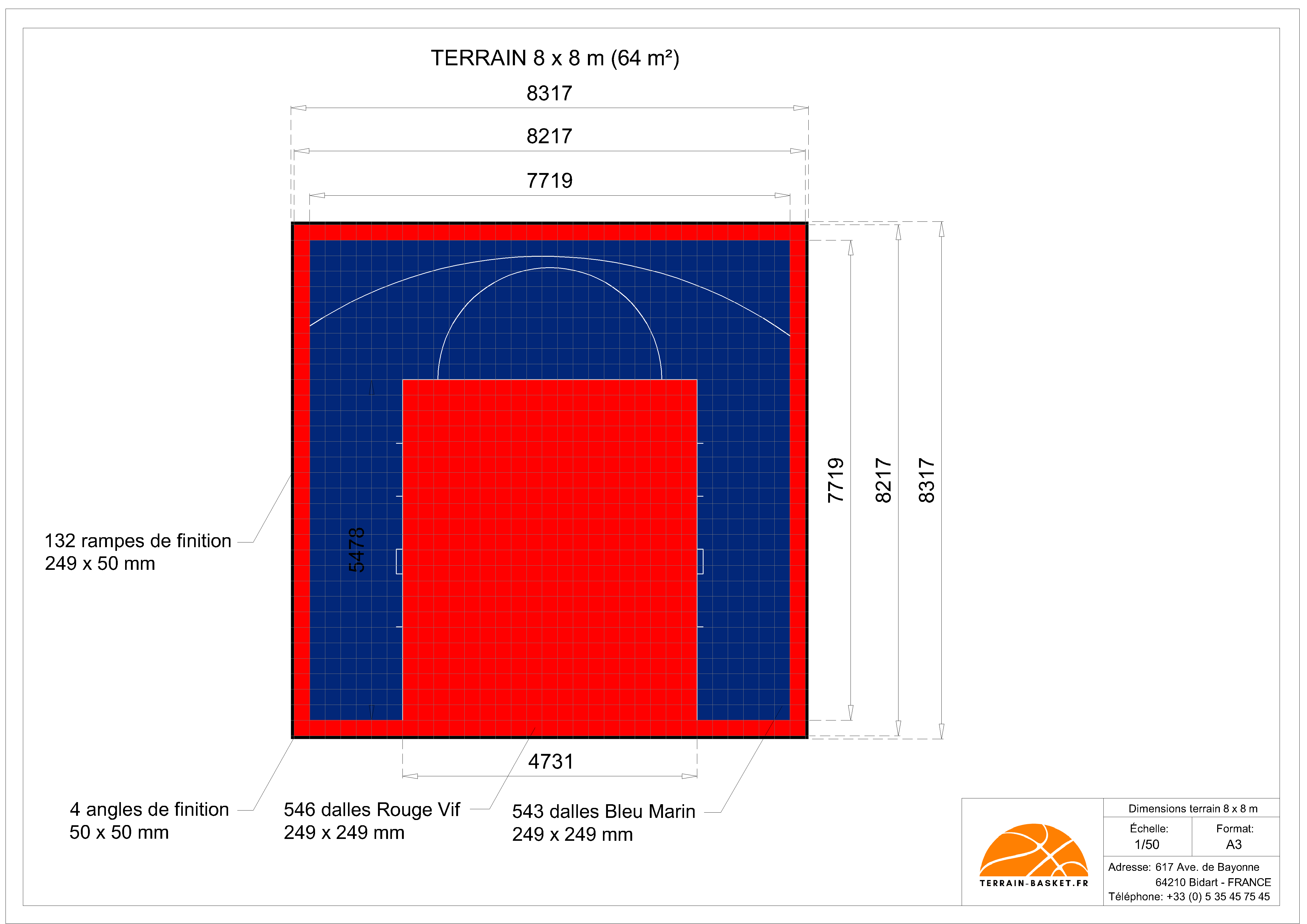 Je leur ai commandé un terrain 8x8m et suis totalement ravi de l'ensemble de la prestation : le produit, le service client, les délais de livraison...tout était parfait ! Je recommande chaleureusement (pour celles et ceux qui ont l'espace) l'installation de l'un de leurs terrains de basket, ça va transformer vos après-midi en famille ou entre amis.