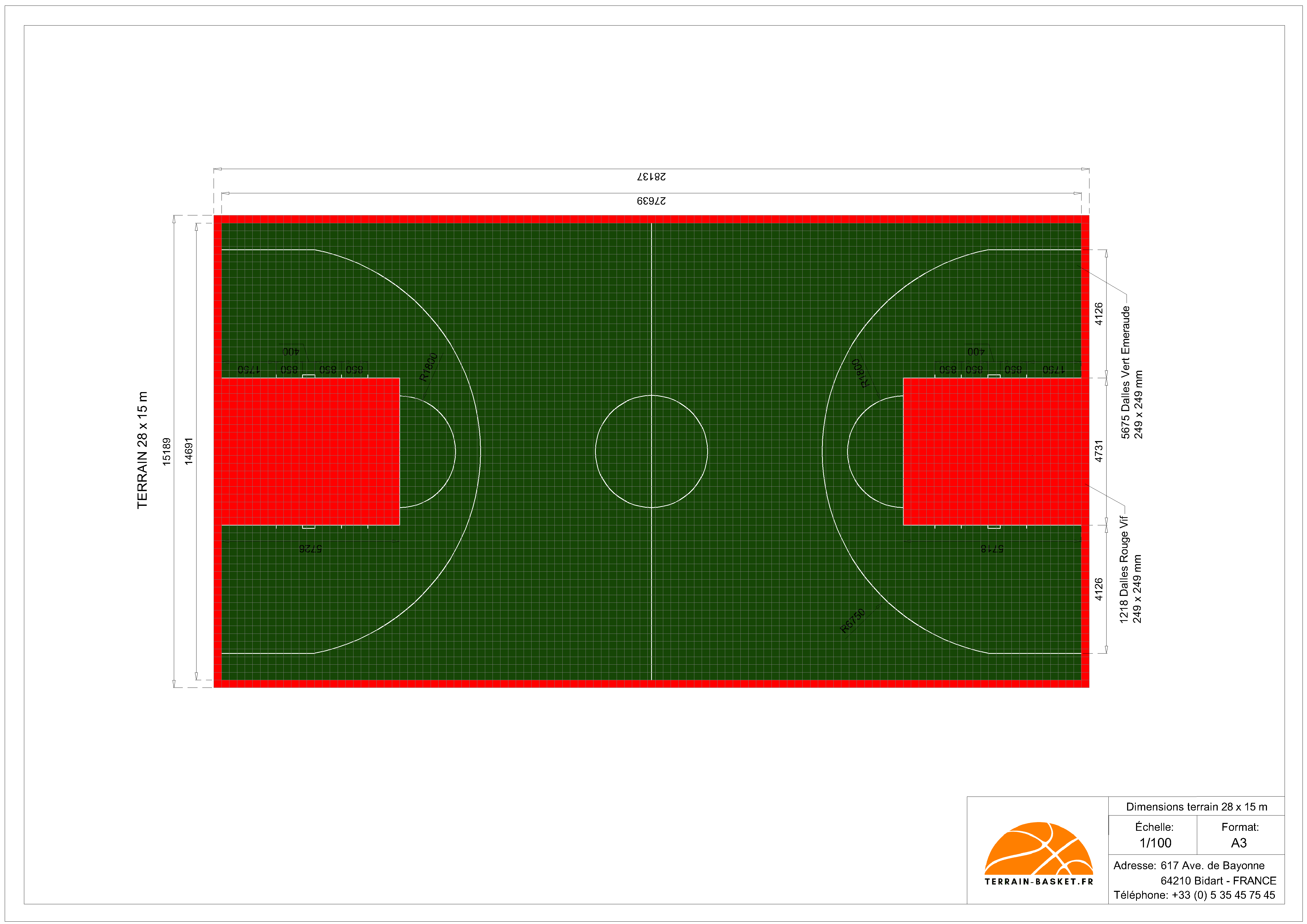 Vous avez pour projet d’installer un terrain de Basketball 28m x 15m aux dimensions et marquages officiels de la FFBB en intérieur ?