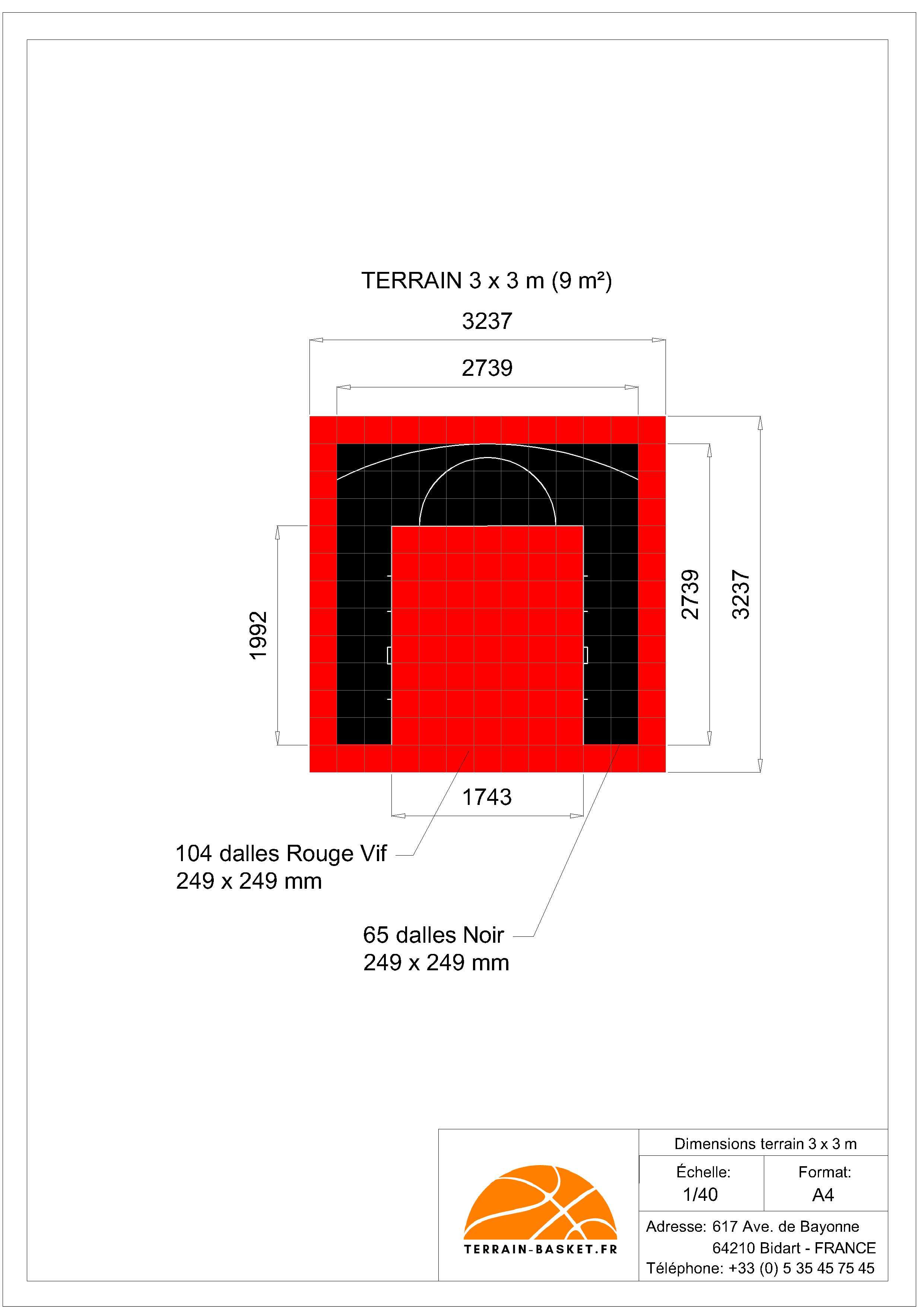 Terrain de Basketball intérieur 3 x 3 M | Couleur(s) au choix | Livraison et installation comprise
