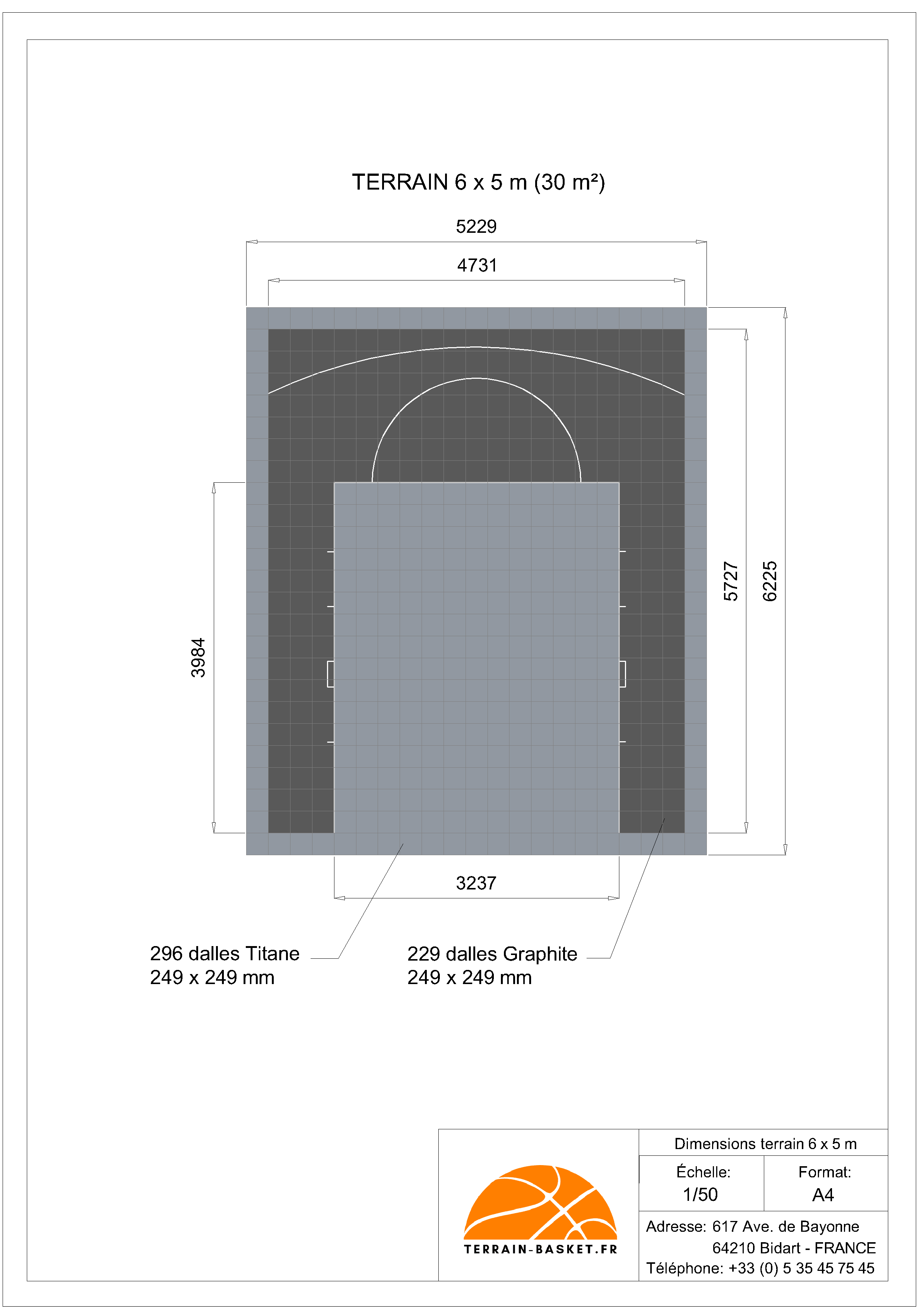 Ce terrain de Basketball intérieur 6m x 5m comprend :